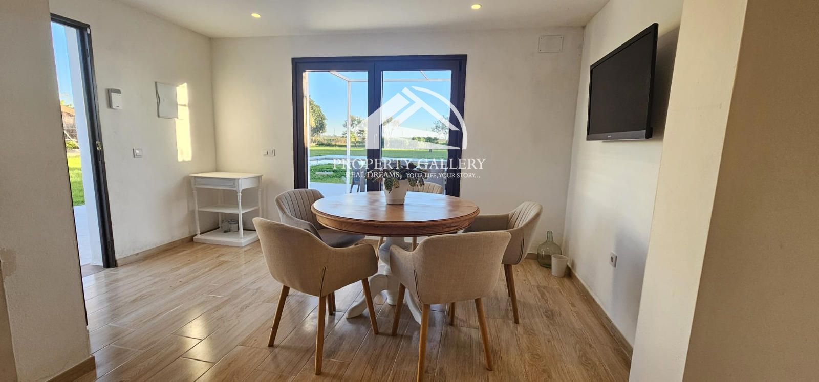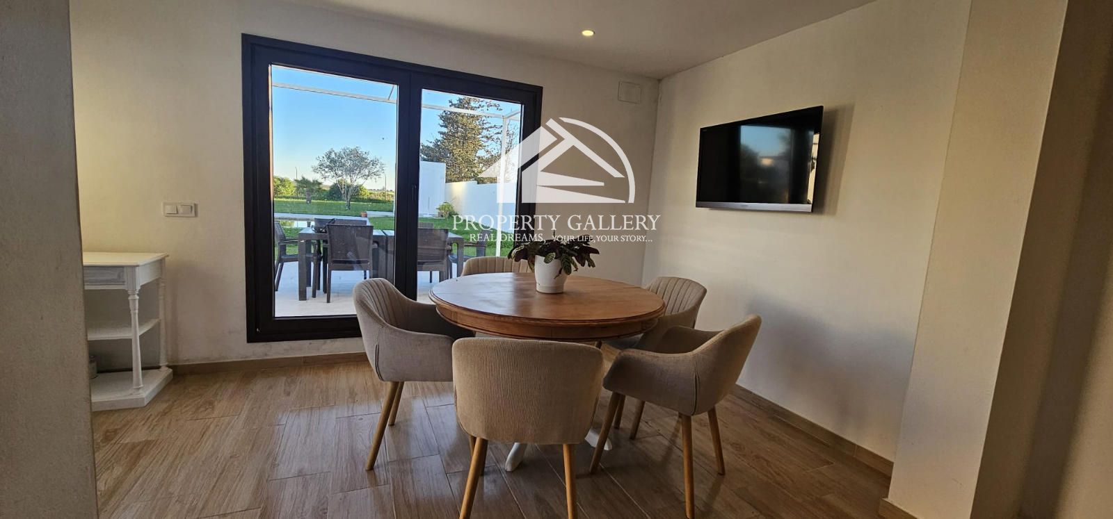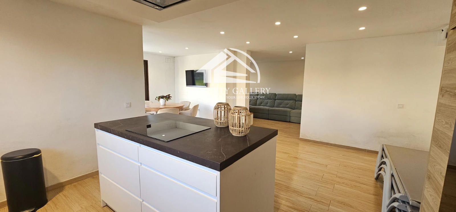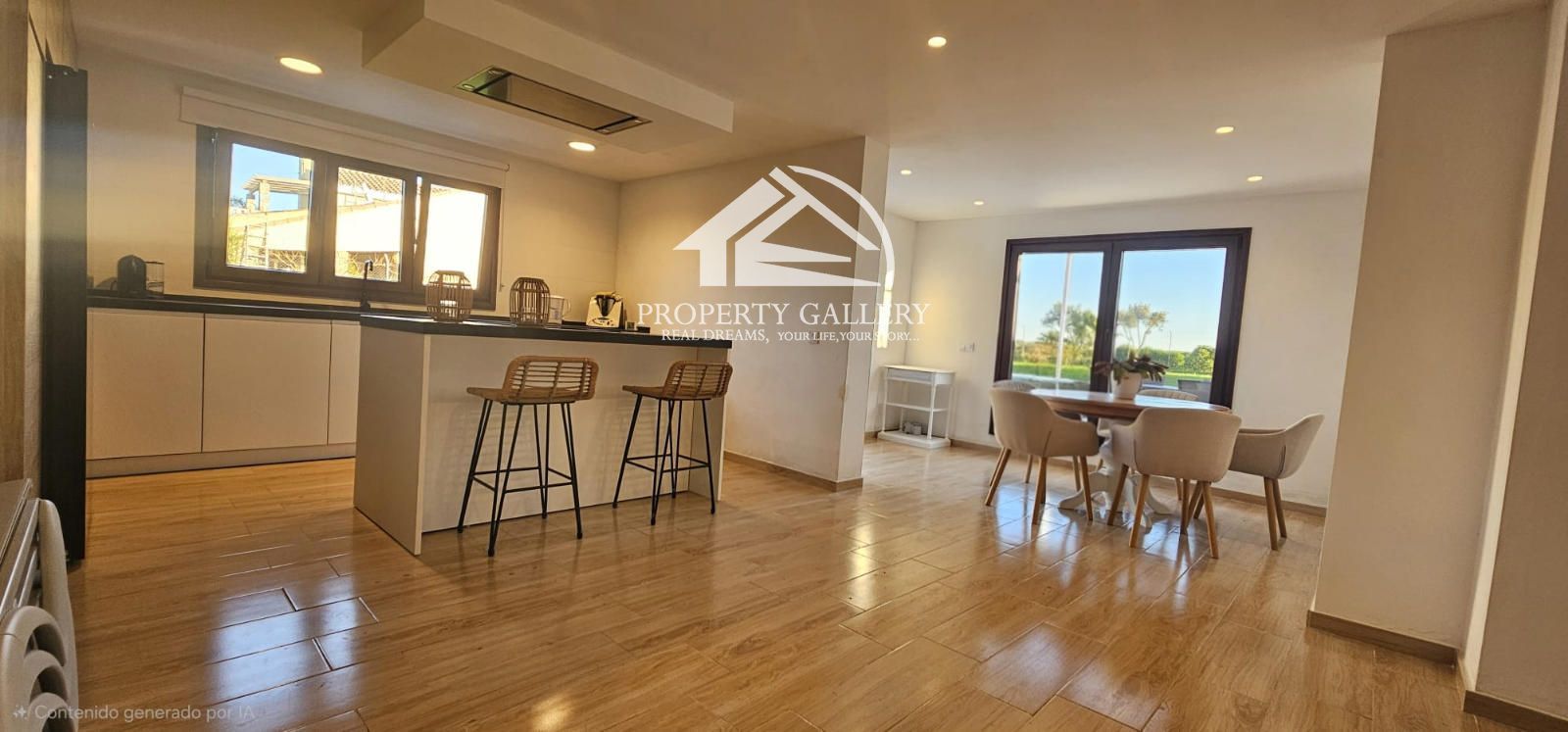 La casa de 136 m2. destaca por su espacio diáfano, donde tiene una espectacular cocina tipo americana totalmente equipada, un luminoso comedor y una acogedora zona de Tv., creando un ambiente moderno y funcional.